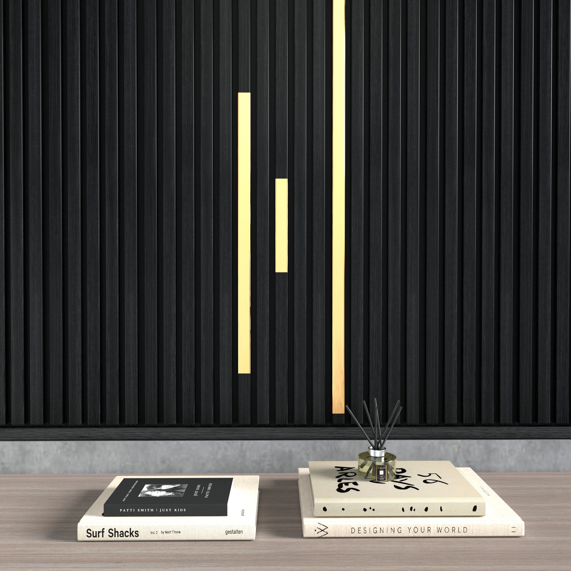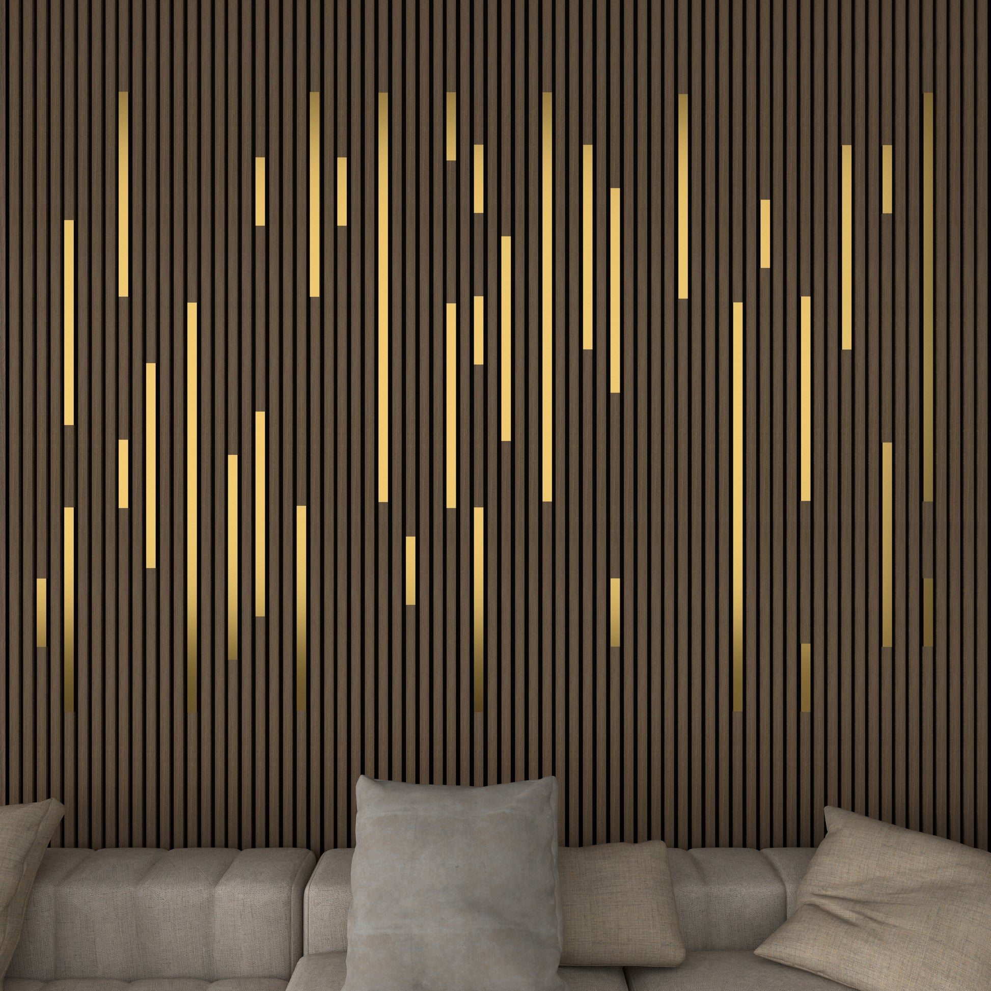My all black acoustic island wall needed more than the gold outlet covers to add some style! Adding several different length gold covers did the trick. I just ordered 2 more.